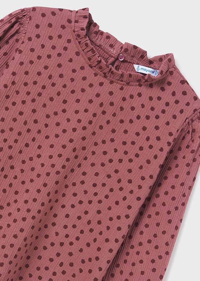 Очень милая блузка малиновогоцвета с драпированным горлышкомстанет отличным вариантом накаждый день. Кофточка очень мягкаяи приятная к телу.