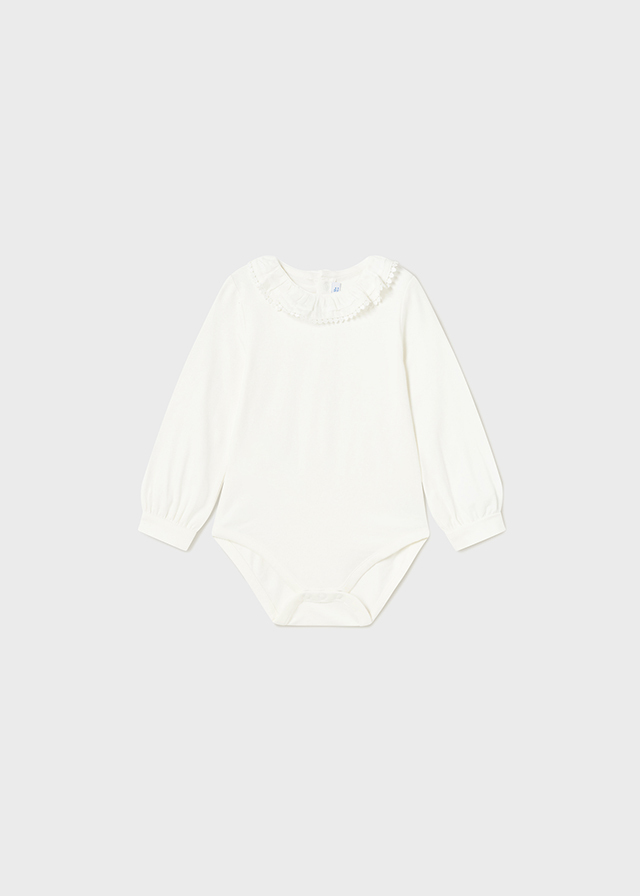 Милейшее боди молочного цвета,с милым декорированным воротничком,сделает из Вашей малышки настоящегоангелочка.