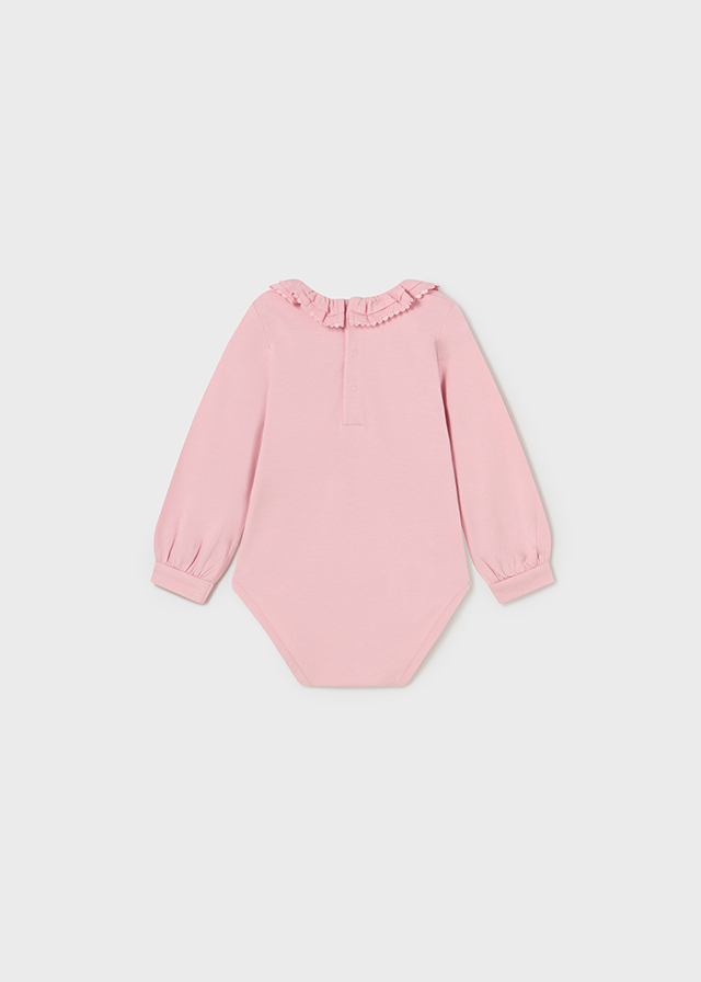 Милейшее боди нежно-розового цвета,с милым декорированным воротничком,сделает из Вашей малышки настоящегоангелочка.