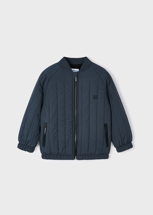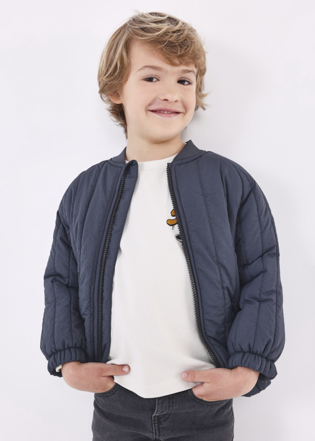 Стеганный объемный бомбер графитовогоцвета отлично будет смотреться какс брюками, так и с джинсами. Отличнаякуртка на осень и весну.