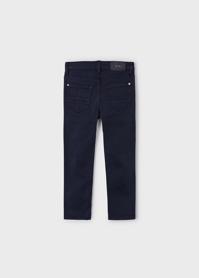Удобные и приятные к телуповседневные брюки для мальчикатемно-синего цвета выручат Вас этойосенью. Отличный вариант для обновлениябазовых вещей и создания новых стильных образов.