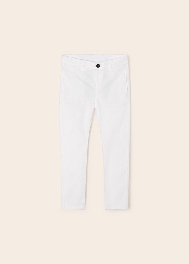 Вечная классика - это брюки чиносы.Данная модель выполнена в беломцвете, что позволит сделатьшикарный и элегантный образ вместес синим брейзером и отправитьсявсей семьей в ресторан или напраздник.