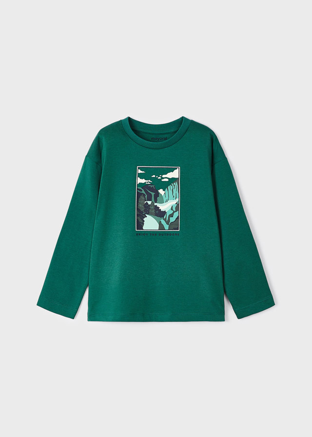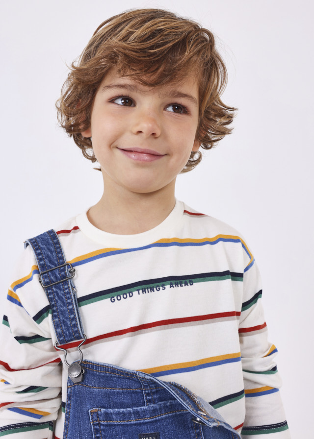 Комплект из двух лонгсливов, состоящийиз кофты изумрудного оттенка с рисункомна груди и полосатой кофты молочногоцвета в полоску поможет легко собратьразные образы сыну.