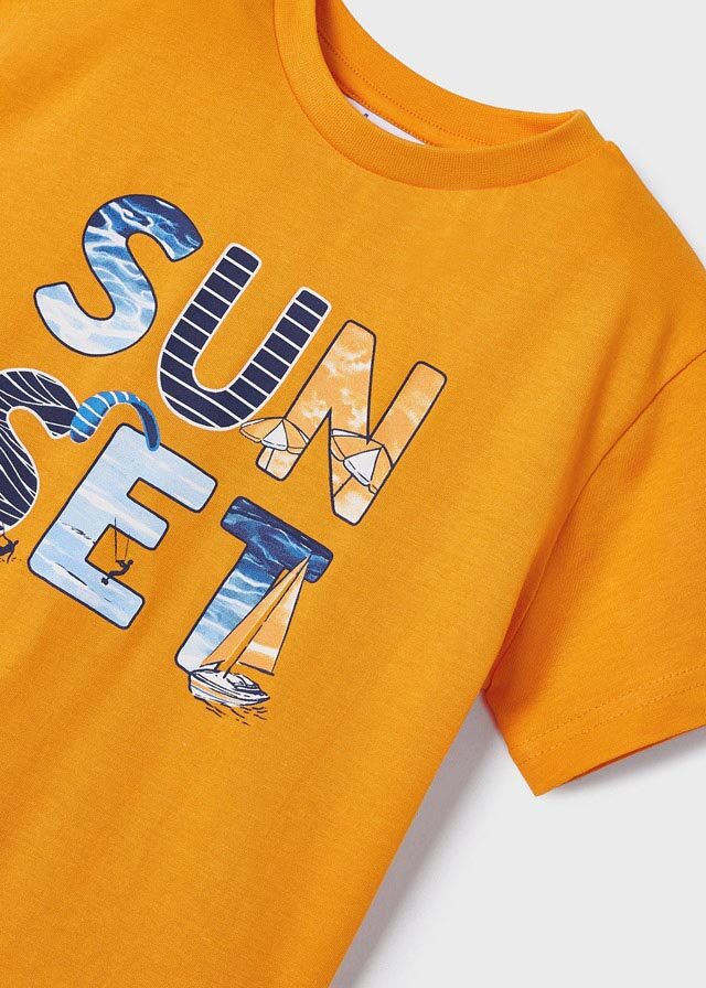 Оранжевая футболка сделает наряд очень