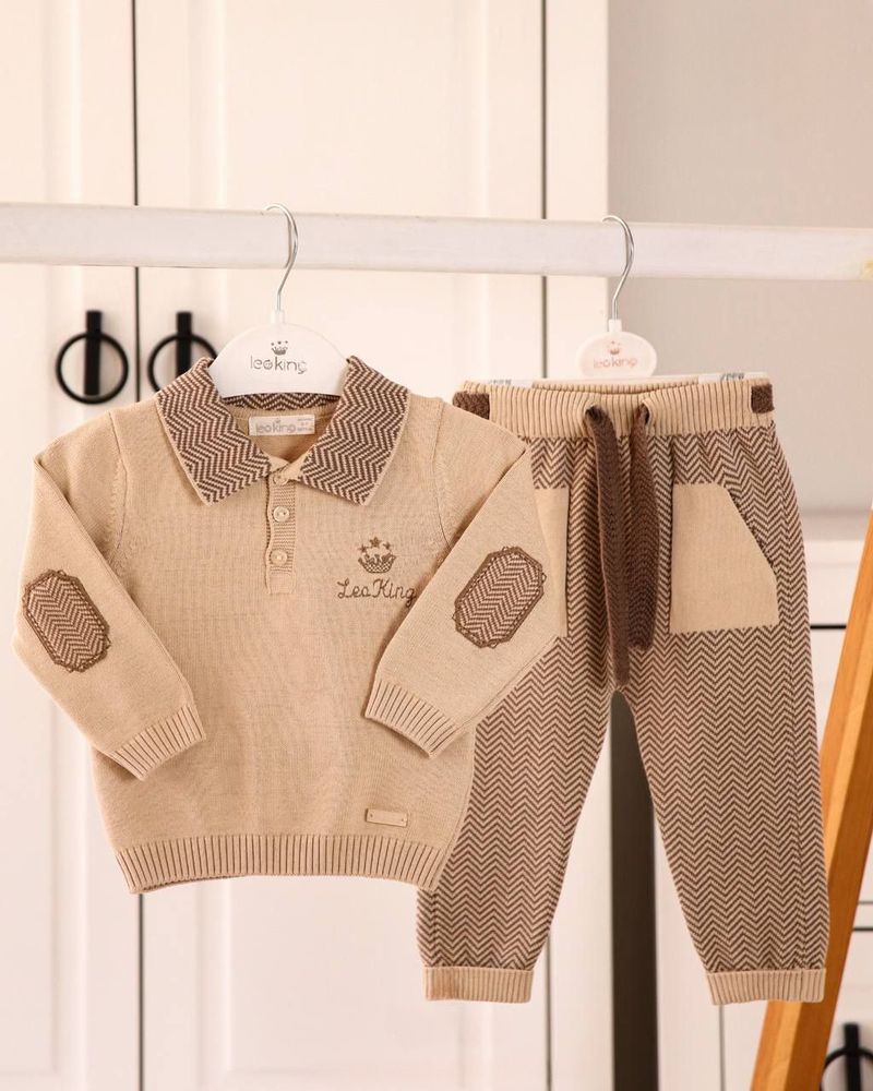 Невероятно стильный мягкий костюм длямалыша бежевого цвета с темно-коричневымзигзагом идеально подойдет на каждыйдень. Комплект очень удобный, и мальчикубудет в нем комфортно.