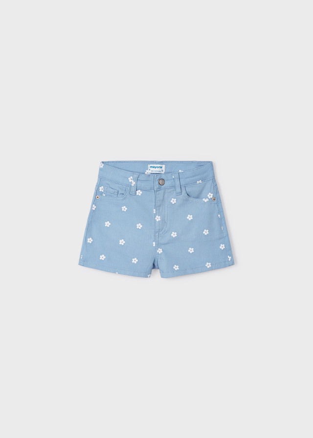 Очень милые джинсовые шортыголубого цвета с рисункоммаленьких цветочков. Удобнаяпосадка обеспечит необходимыйкомфорт девочке во времяразличных активных игр.