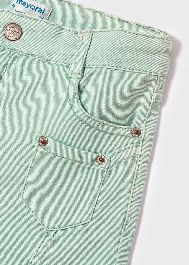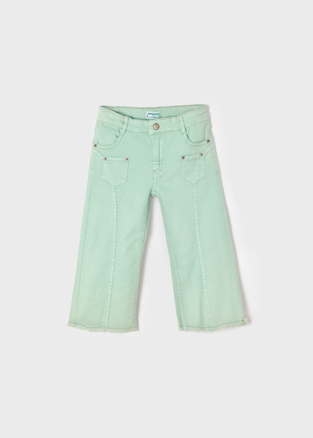 Чудесные укороченные джинсы мятногоцвета привлекут к себе всеобщеевнимание. Ваша дочка будет самойстильной среди подружек.