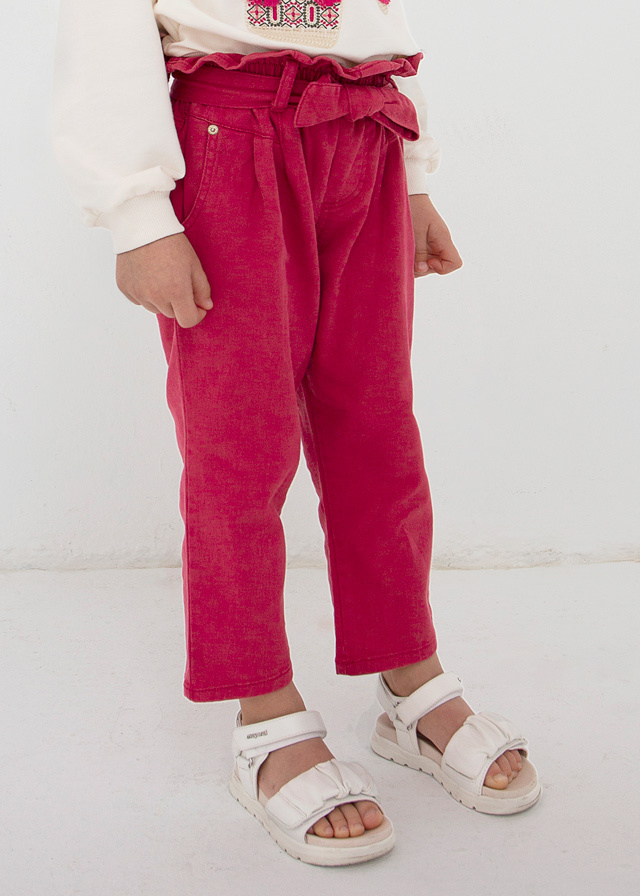 Чудесные укороченные джинсымалинового цвета с поясомпривлекут к себе всеобщеевнимание. Ваша дочка будет самойстильной среди подружек.