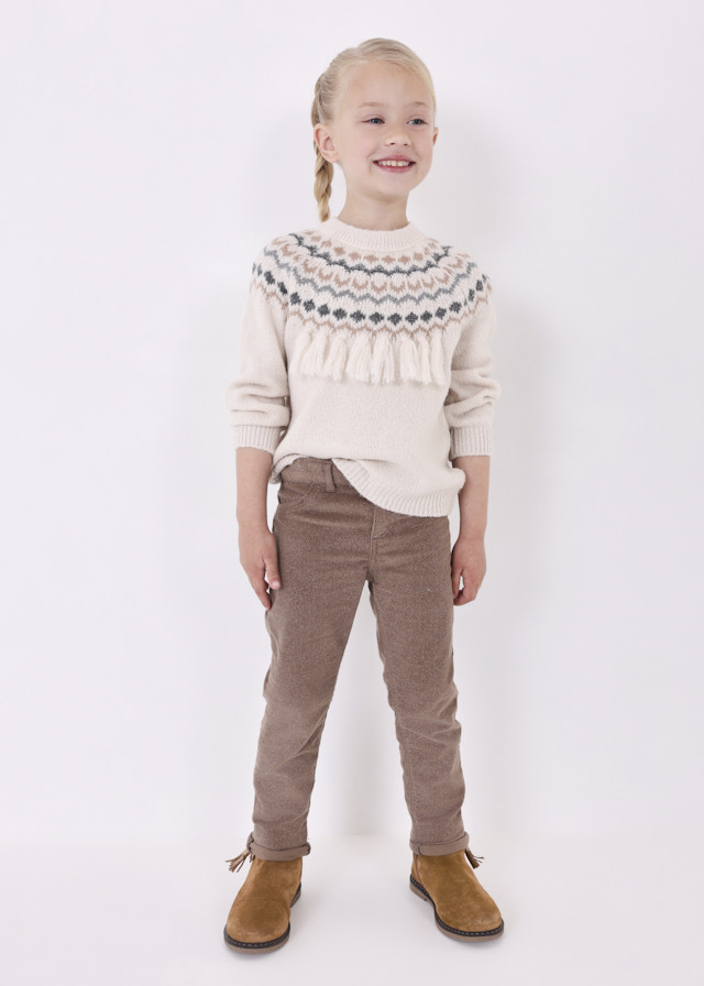 Мягкие коричневые вельветовые брюкив крапинку для девочек будут легко сочетатьсяс верхом разных оттенков. В них будеточень удобно во время прогулок.Ваша дочка будет довольна подарком.