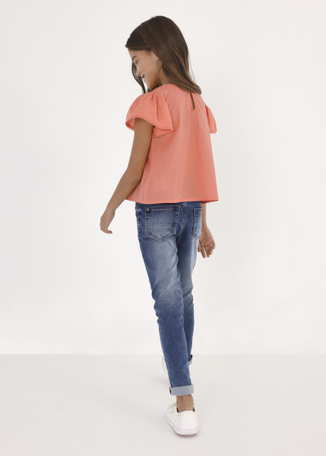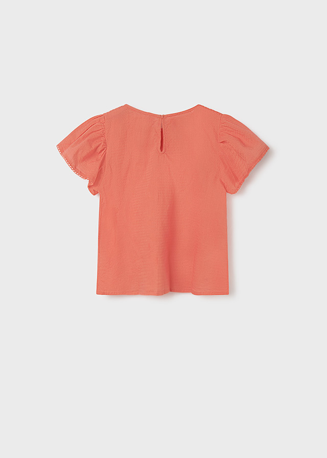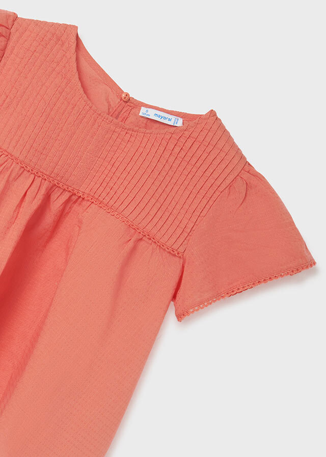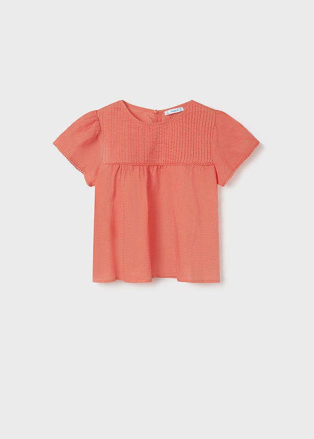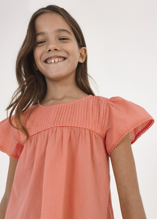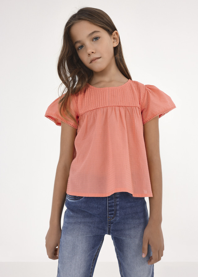 Воздушный хлопковый топ для девочеккораллового цвета отлично подойдетна каждый день. А летом еще и спасетот знойного солнца.