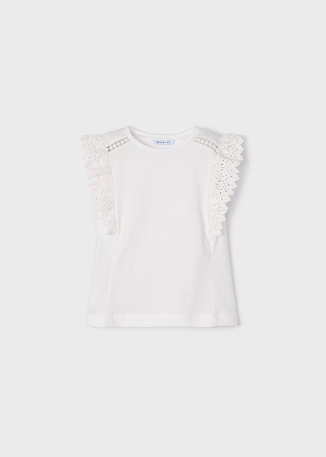 Очень красивый кружевной топбелоснежного цвета будет отличносочетаться и с джинсами, и с юбочкой.Кружева выглядят очень мило и стильно.