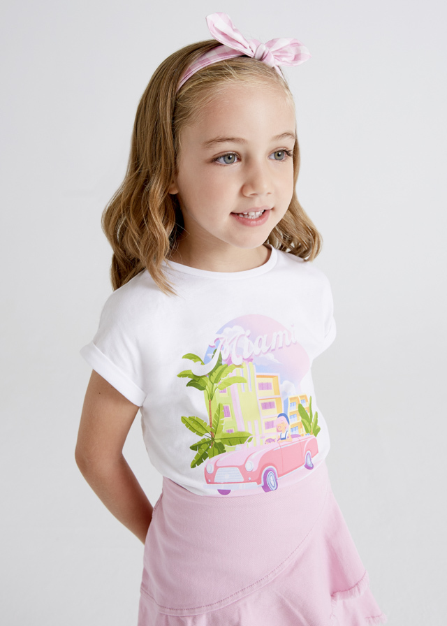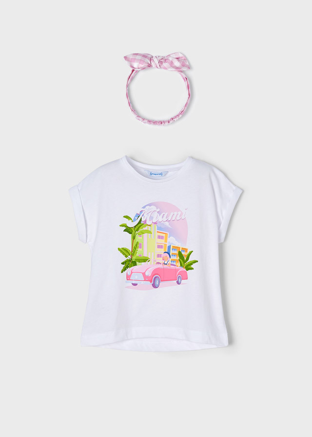 Иногда каждой девочке хочетсятоже побыть похожей на куколку.В футболочке в стиле Barbi cрозовой повязкой на голову ейэто точно удастся.