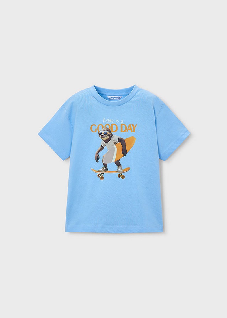 Футболка приятного цвета со стильнымрисунком обратит на себя вниманиевсех ребят вокруг. Вашему сыночку точнозахочется такую классную футболку на лето.