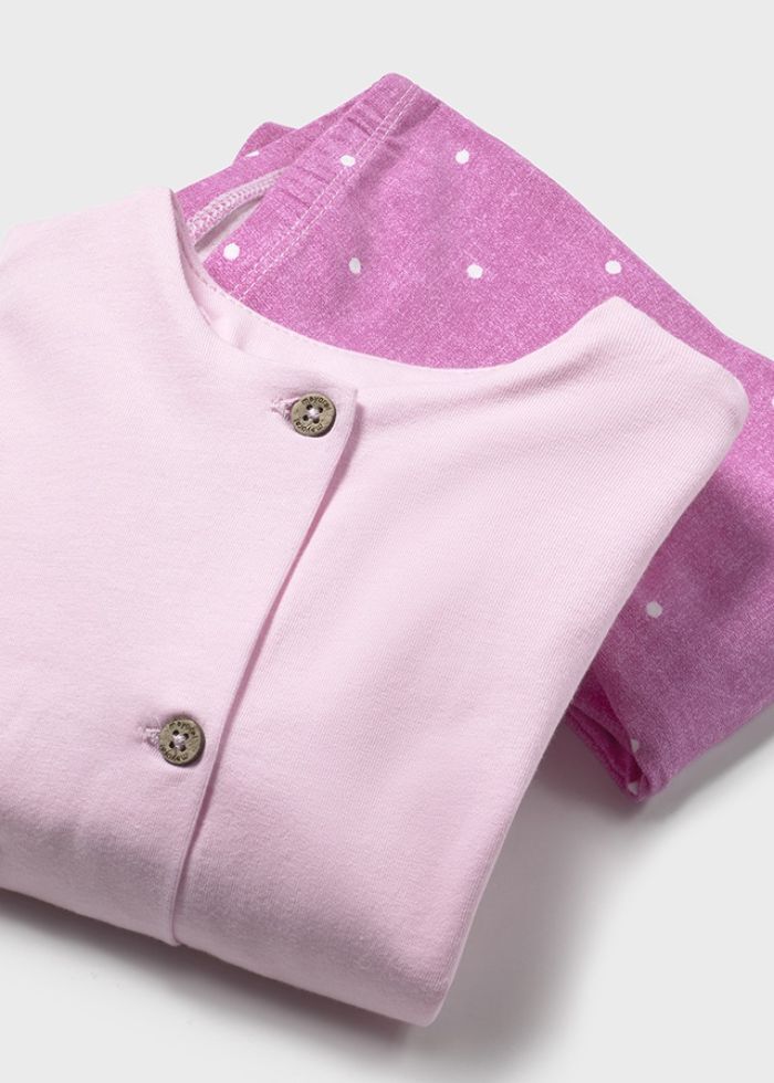 Чудесный костюм для малышки изприятной к телу футболки с красивымрисунком, мягким кардиганом и удобныхлеггинсов прекрасно подойдет на каждый день.Малышке будет в нем очень комфортно.