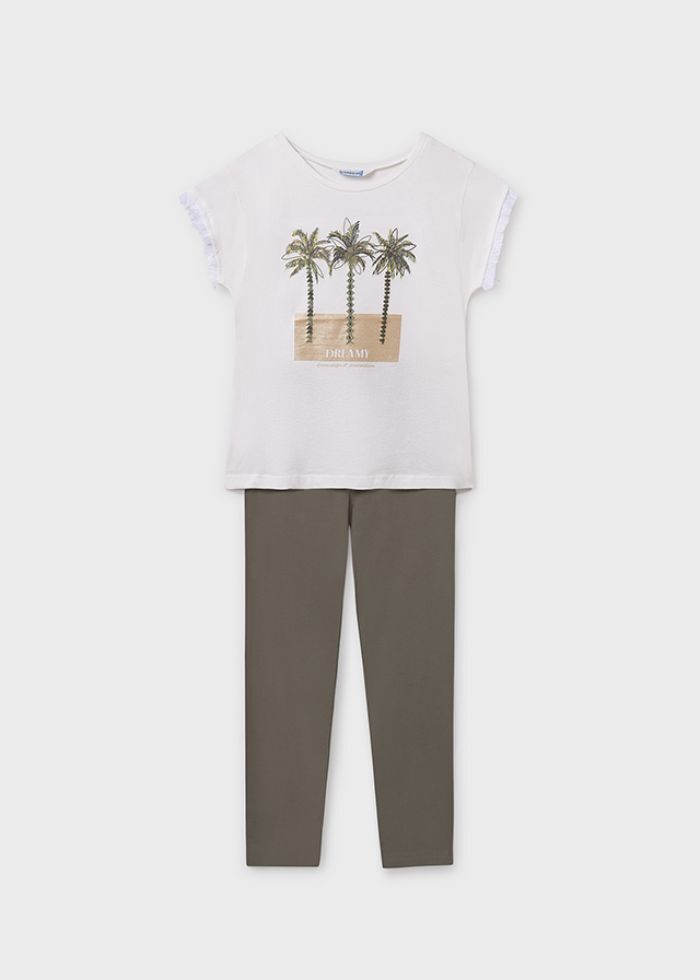 Чудесный костюм для девочки изприятной к телу футболки с красивымрисунком и удобных классных леггинсовпрекрасно подойдет на каждый день.Дочке будет в нем очень комфортно.