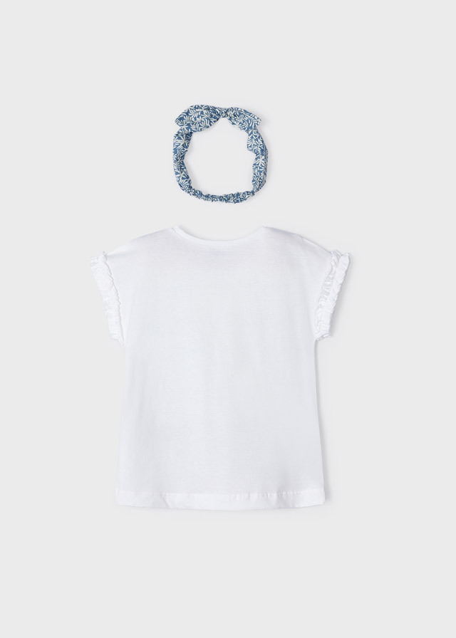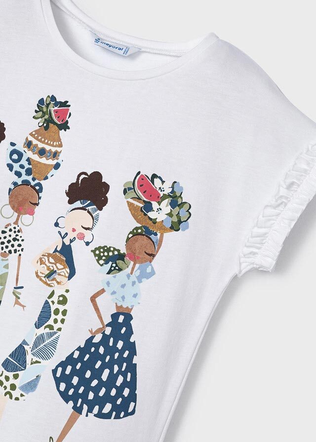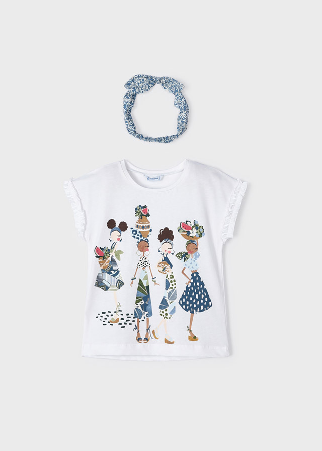 Иногда каждой девочке хочетсятоже побыть похожей на взрослыхдевчонок. В футболке с рисункомюжных красоток и c голубой повязкойна голову ей это точно удастся.