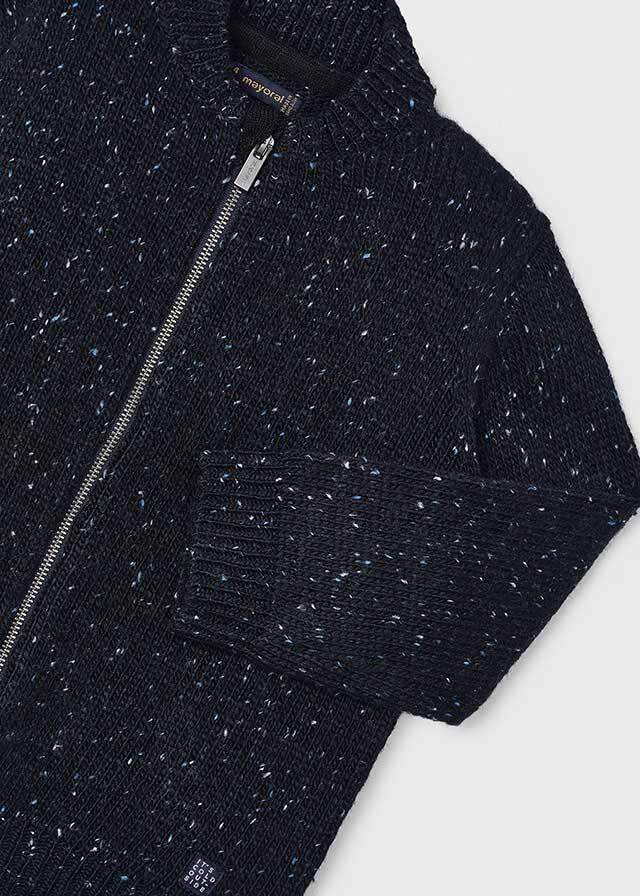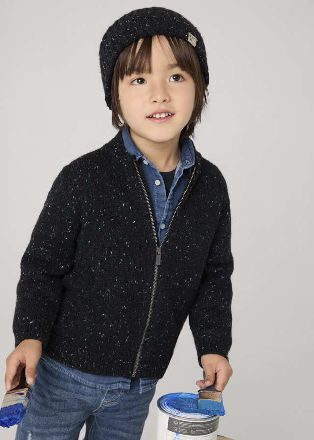 Удобный и уютный кардиган на молниис капюшоном подарит мальчику необходимыйкомфорт и тепло для прогулок холоднымиднями. Также подойдет и для школы,сочетав его вместе с рубашкой.