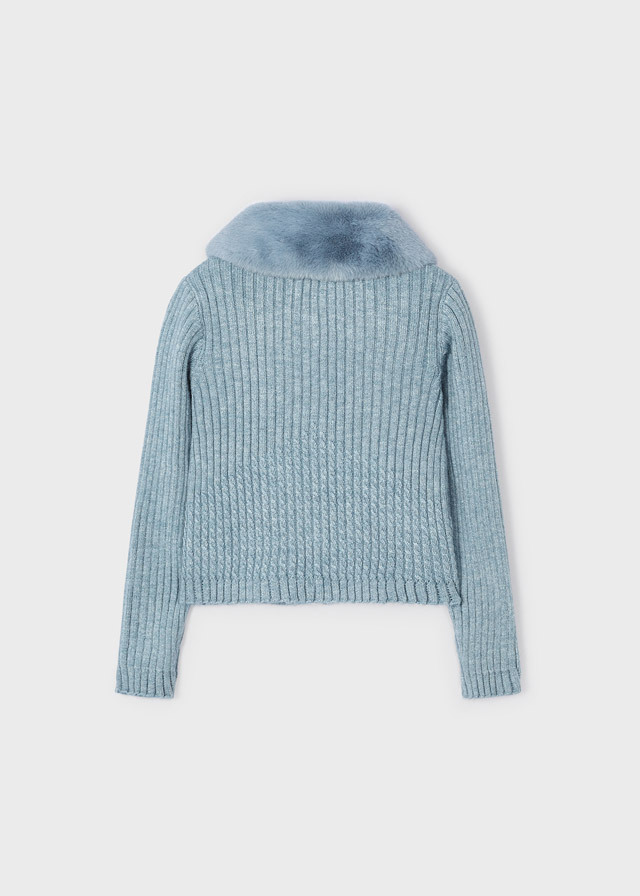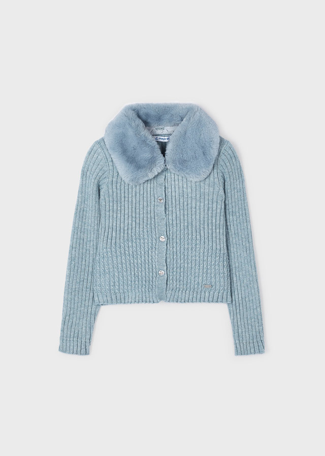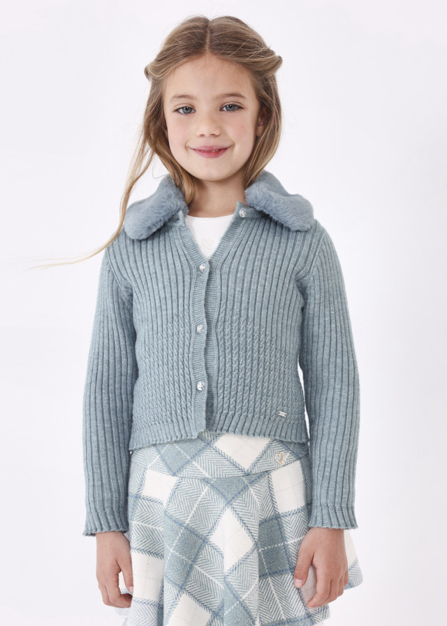 Очень мягкая трикотажная кофтана пуговичках с отстегивающимсямеховым воротничком сделает изВашей доченьки настоящую леди.