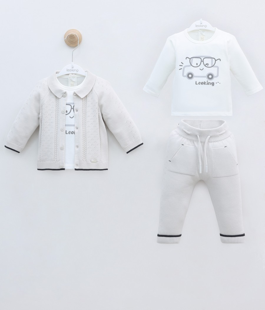 Красивый и очень удобный костюмприятного оттенка выполнен из 100% хлопка.Комплект включает в себя приятные к телу лонгслив,кофту на пуговичках и брюки с кармашками.Идеальный подарок для своего малыша.