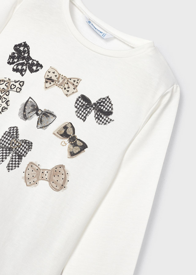Приятная к телу кофта белоснежногоцвета с рисунком различныхбантиков подойдет на любой сезон.Ее можно надеть и на прогулку, ив детский сад или в школу под жакет.