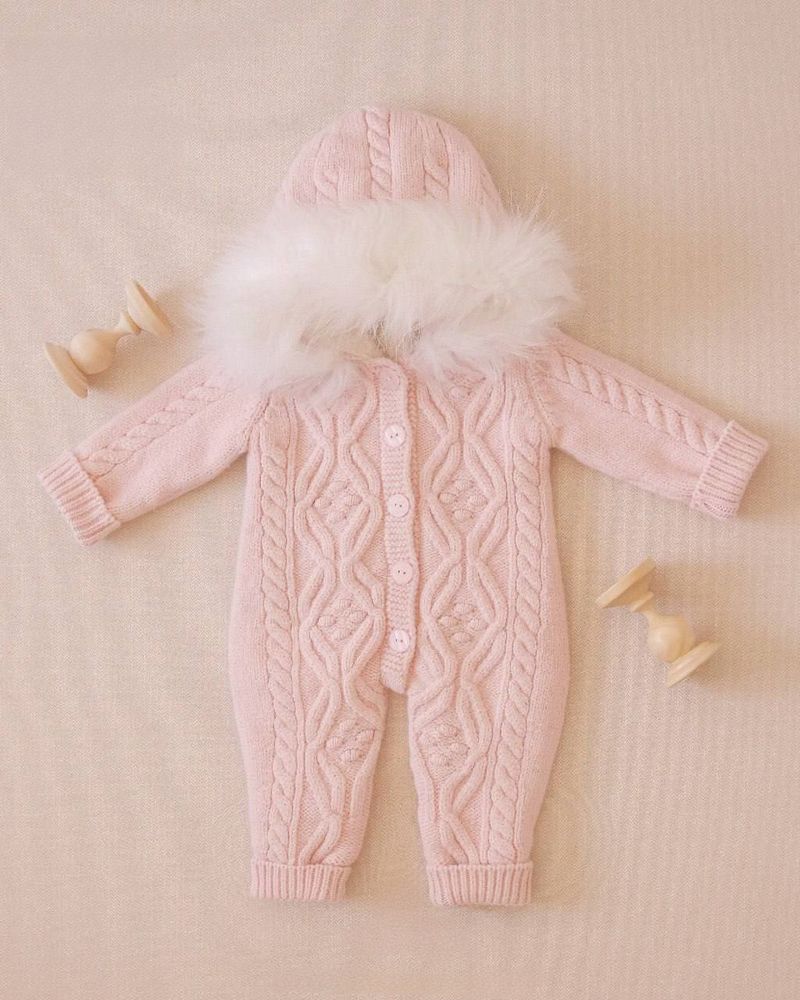 Красивый милый комбинезон нежно-розовогоцвета с белым меховым капюшономсоздаст сказочный образ для Вашей доченьки.Вы будете влюблены в наряд с первоговзгляда.