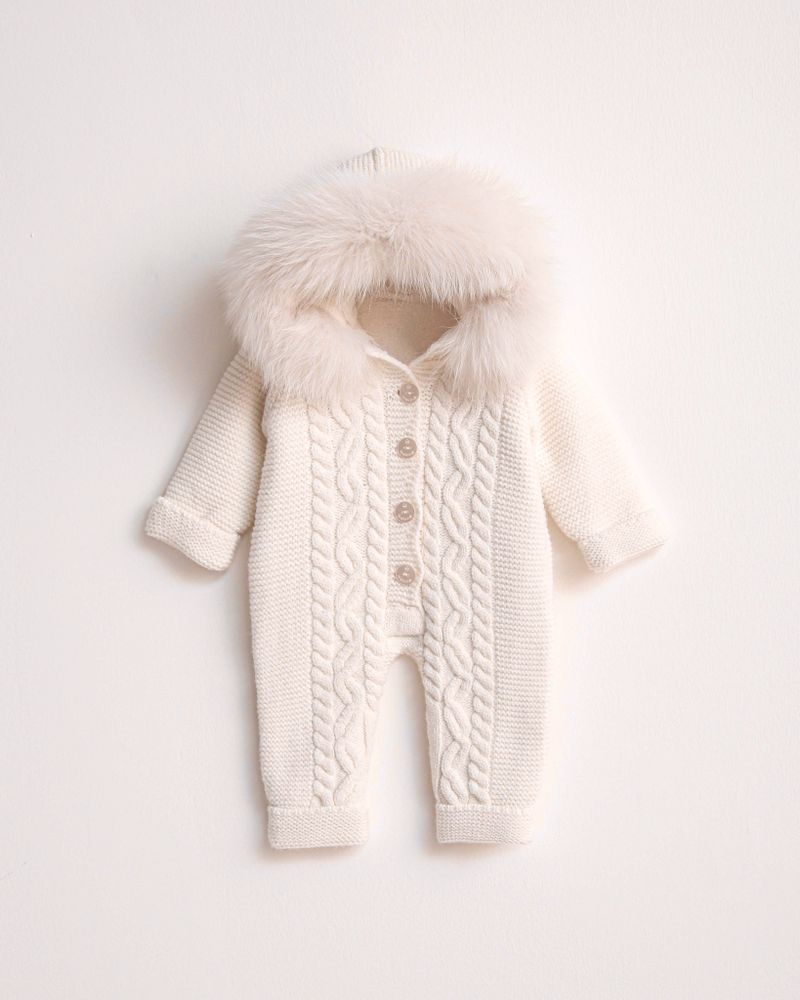 Красивый милый комбинезон молочногоцвета с меховым капюшоном создаст сказочныйобраз для Вашей доченьки. Вы будете влюбленыв наряд с первого взгляда.