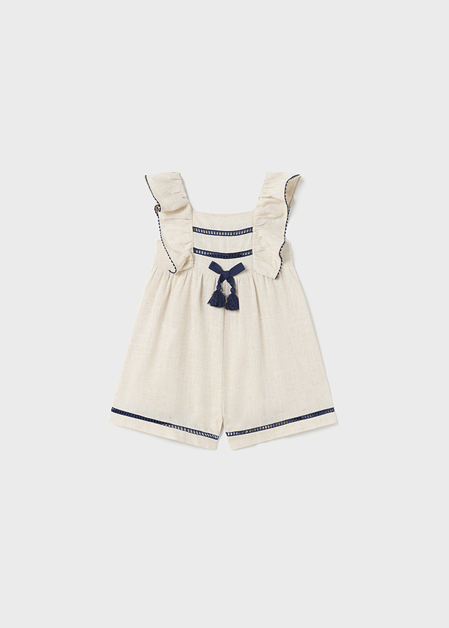 В таком элегантном комбинезоненатурального бежевого оттенкаВаша малышка будет выглядетьочень стильно. Полукомбинезонимеет свободный фасон, что позволитне сковывать движения ребенка.