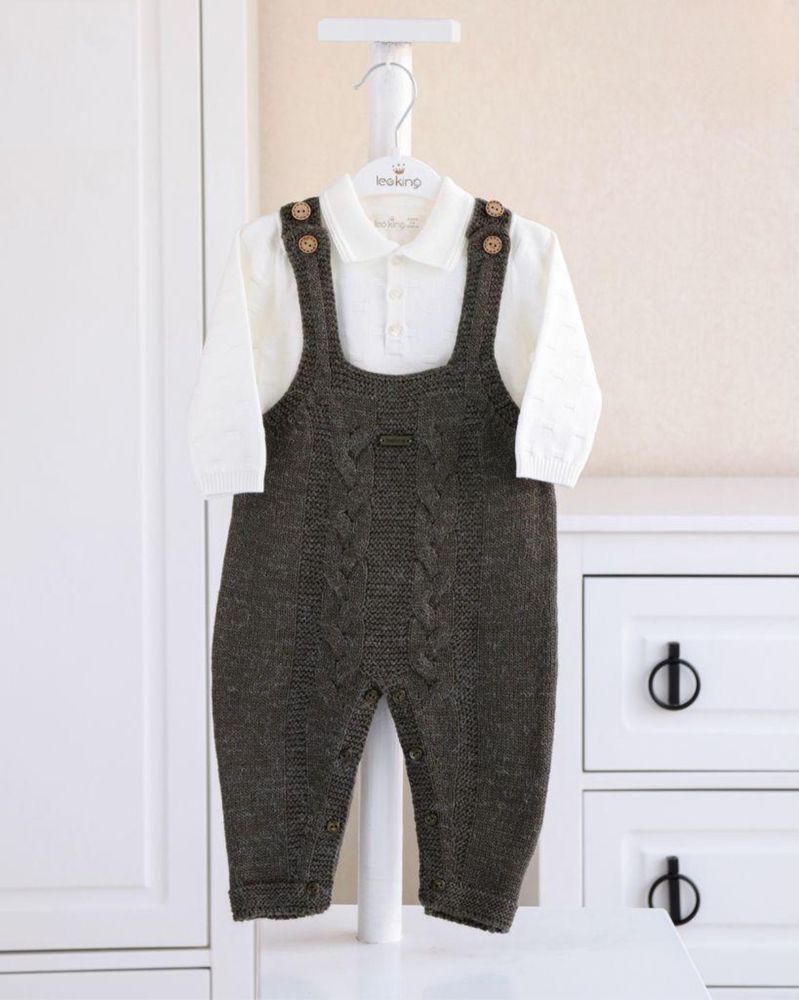 Теплый и очень удобный комбинезониз 100% акрила глубокого зеленогоцвета с нежным белоснежным боди,выполненным из 100% хлопка, выручитВас и малыша по любому поводу.