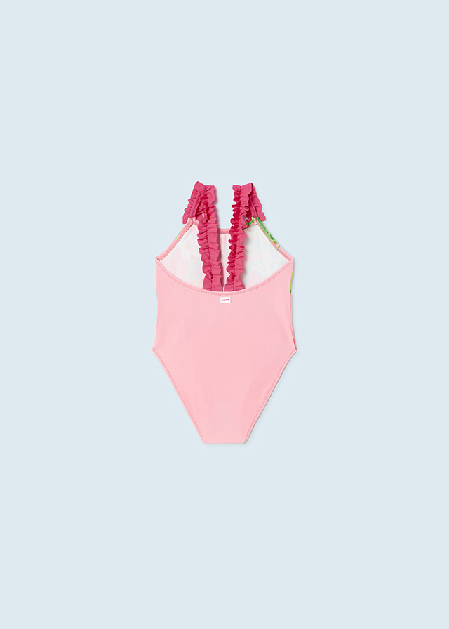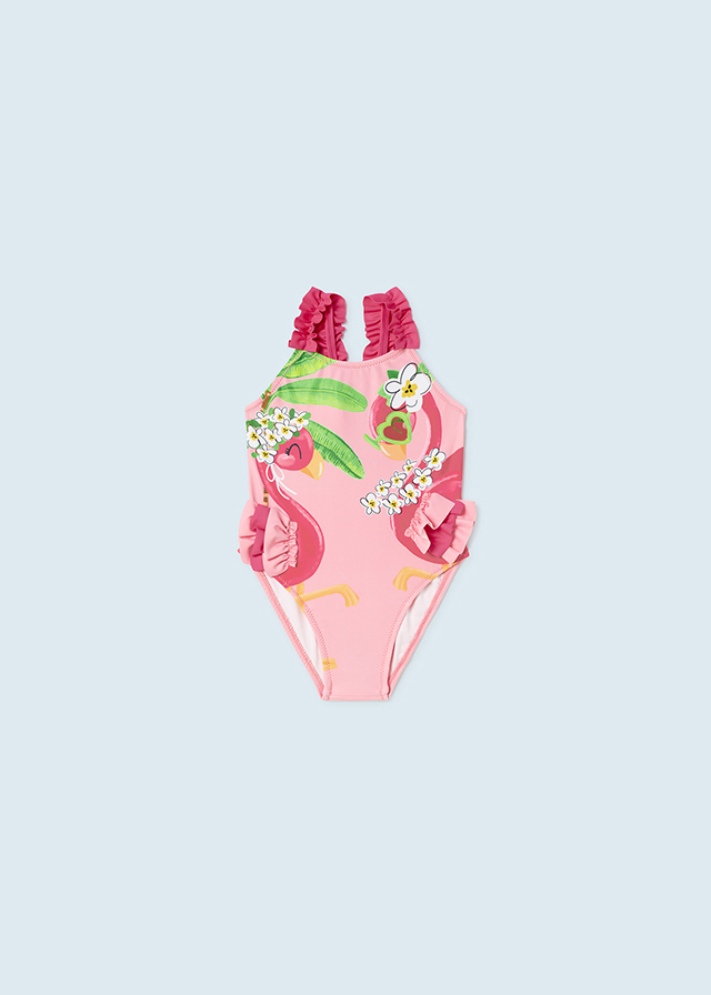 Красивый розовый купальникс рисунком фламинго с цветочкамибудет выделяться на фоне остальных.Все фотографии с отдыха будутбезумно красочными и сочными.