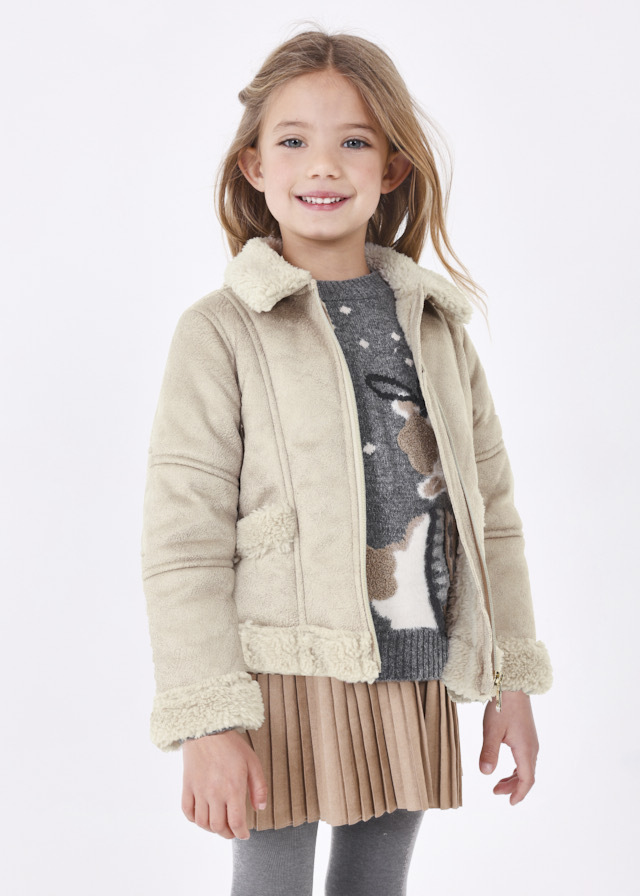 Стильная и эффектная куртка-дубленкаиз эко-меха и эко-кожи сделаеткаждый выход Вашей дочкисовременным и эффектным.А благодаря серебристому блескукаждая дочка будет в восторге оттакого подарка.