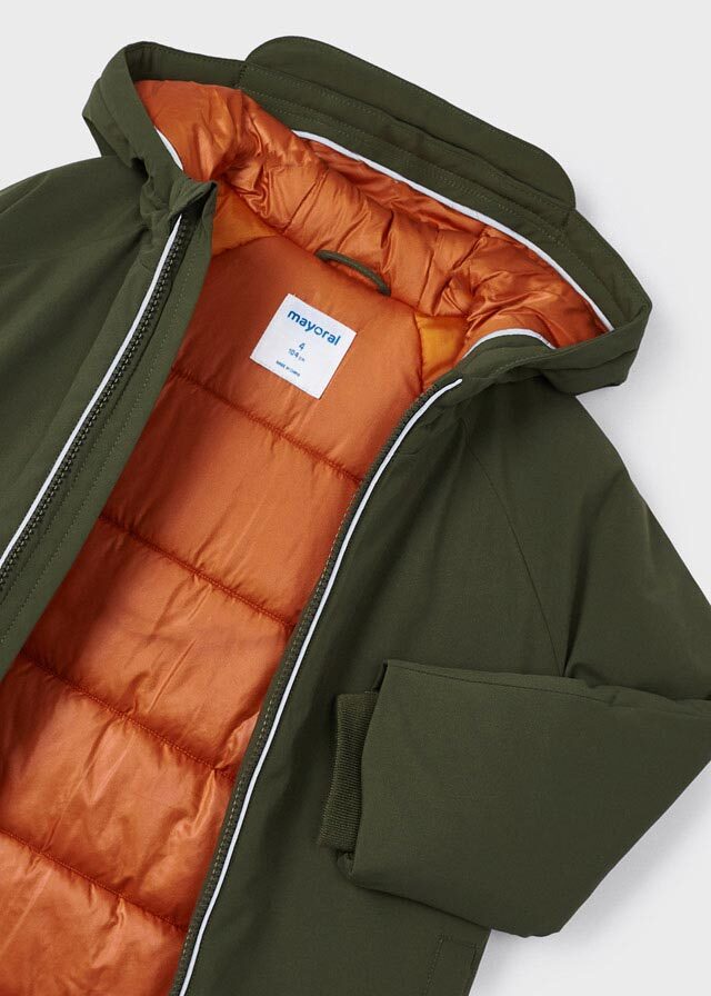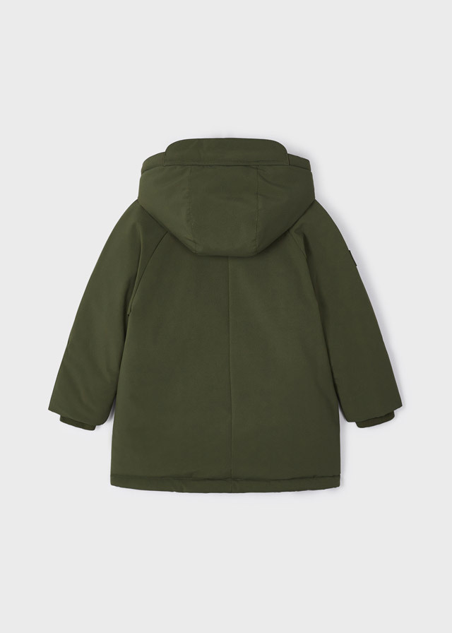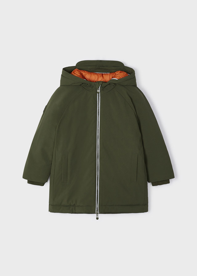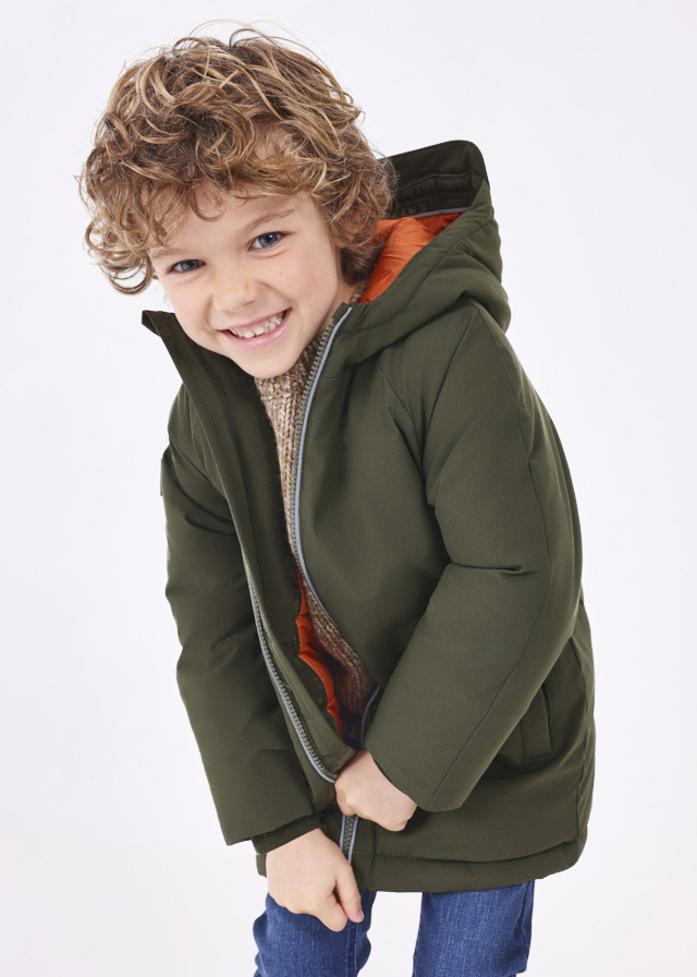 Элегантная удлиненная курткас капюшоном для мальчикасогреет в холодную погоду.Благородный зеленый цветнатурального оттенка будетотлично смотреться не толькос джинсами, но и с брюками.