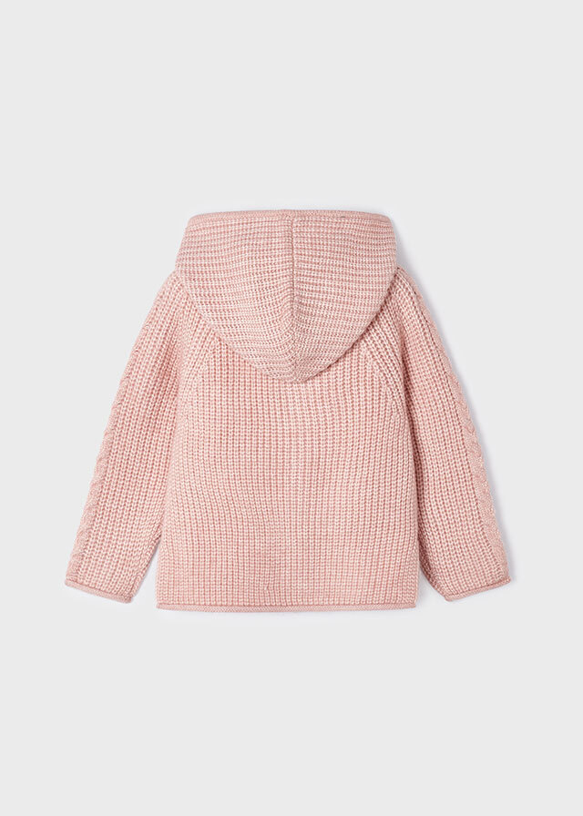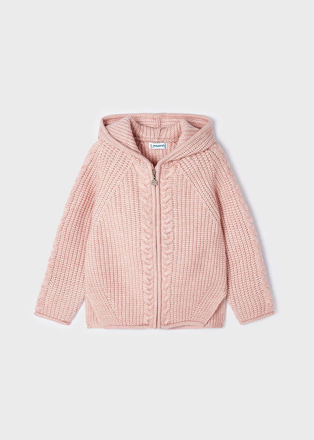 Вязаная куртка с капюшоном на молниипрекрасно подойдет для осени и весны,а также для летних вечеров. Розовыйцвет сделает образ очень милым и нежным.