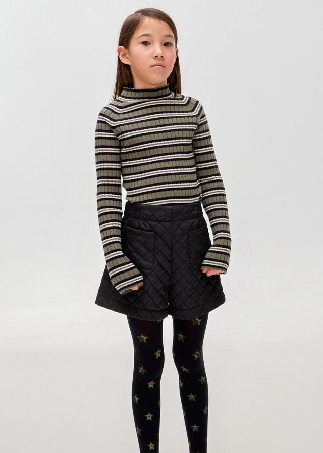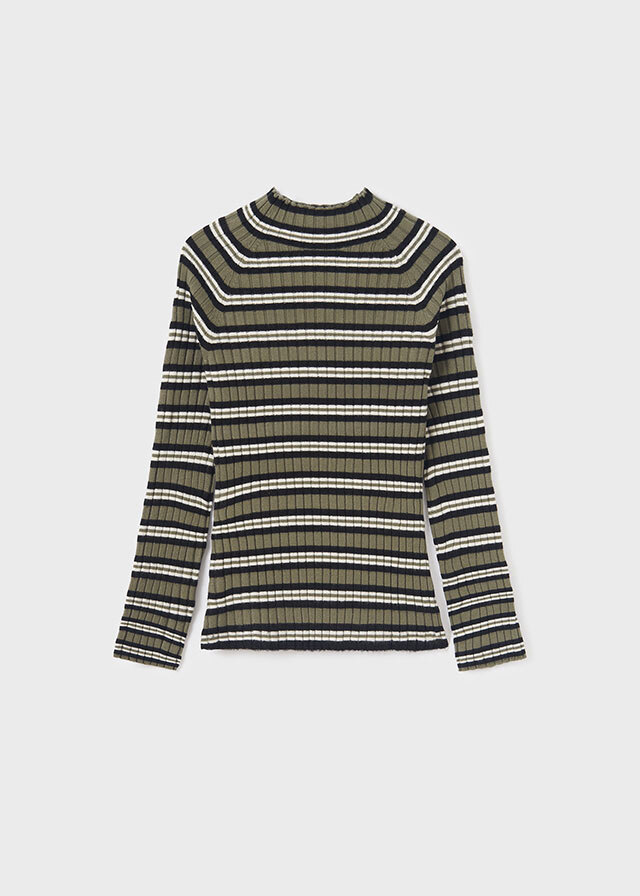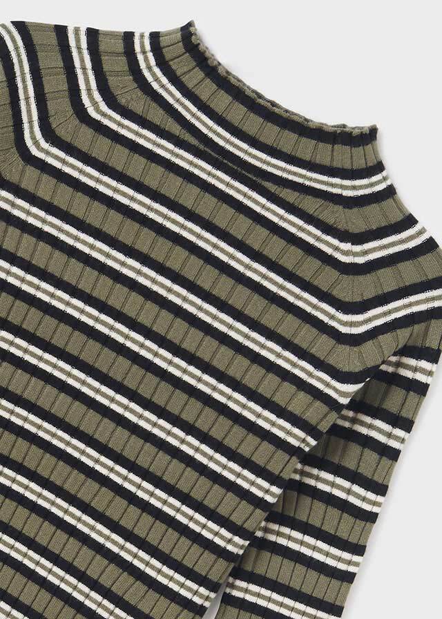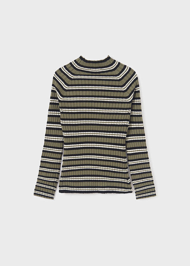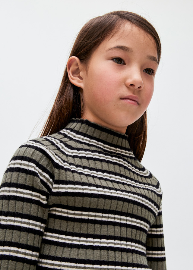Мягкая трикотажная кофта для девочекнатурального зеленого оттенка вполоску - это идеальный вариант налюбое время года и также для школы.