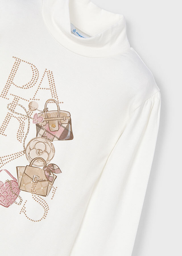 Легкая кофта белоснежного цветасо стильным рисунком подойдетна любой сезон. Ее можно надеть ина прогулку, и в школу.