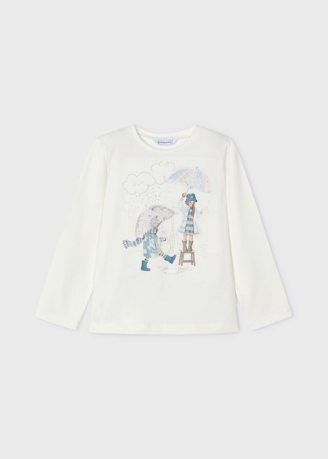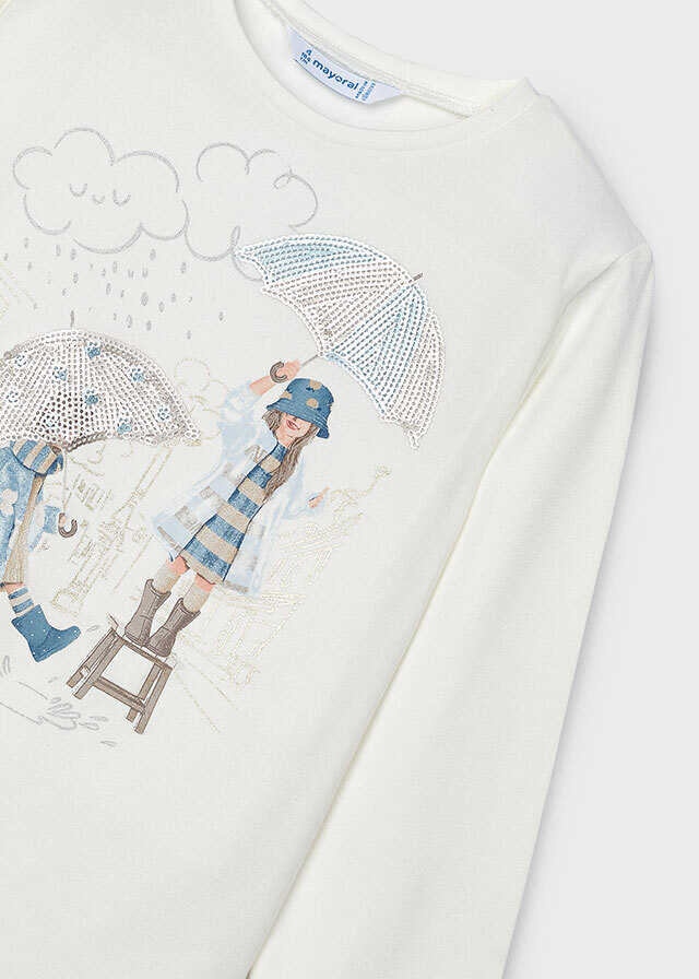 Легкая кофта белоснежного цветасо стильным декорированным рисункомподойдет на любой сезон. Ее можно надеть ина прогулку, и в школу.