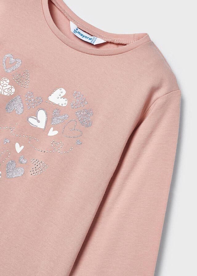 Легкая кофта с декорированнымисердечками нежно-розового цветаподойдет на любой сезон. Ееможно надеть и на прогулку, ив детский сад или в школу.
