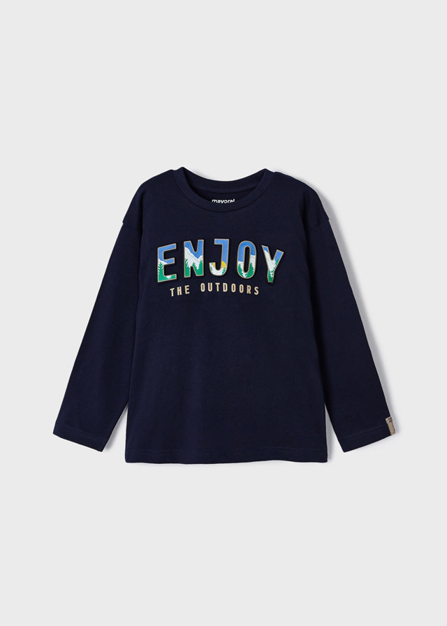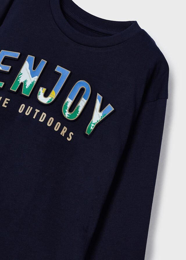 Отличный лонгслив на каждый деньчерного цвета с объемными буквамина груди, в которые можно как будтозаглянуть и увидеть красивые горы.Все ребята захотят такую кофту исебе.