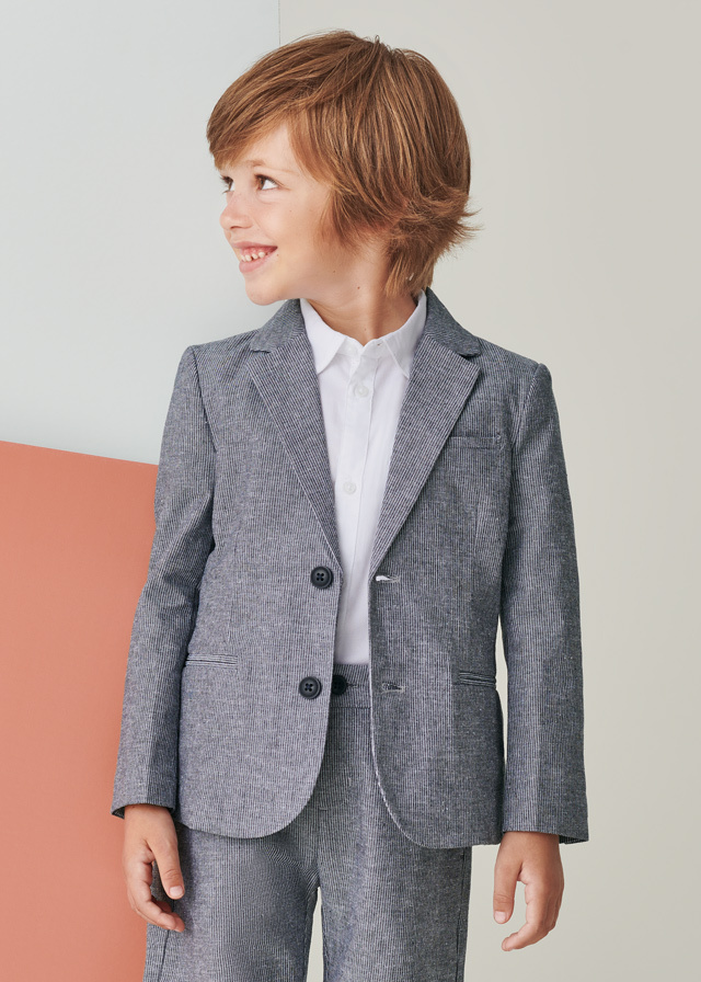 Элегантный светло-серый пиджакдля мальчика прекрасно подойдети для похода на праздник, и длягородских прогулок. Будет отличносочетаться и с джинсами, и с брюками.