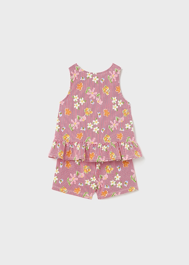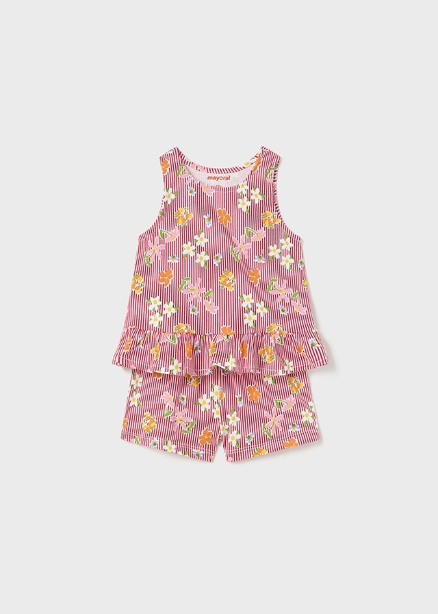 Трикотажный домашний костюмиз шортиков и маечки с рисункомцветочков разных цветов оченьприятный и мягкий. Он подаритчувство уюта Вашему ребенку.Прекрасно подойдет для снав качестве пижамы.