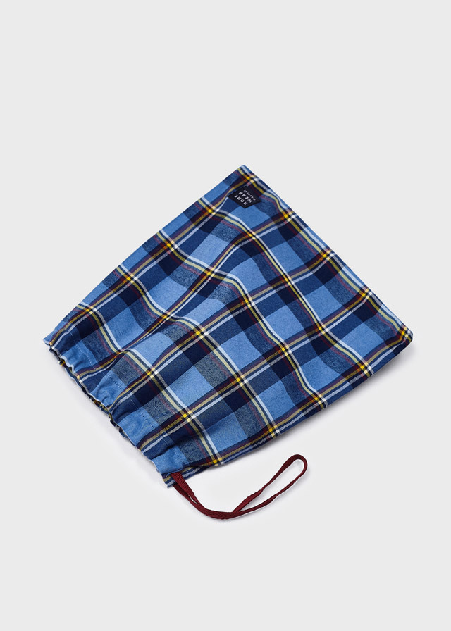 из штанишек синего цвета в клетку
