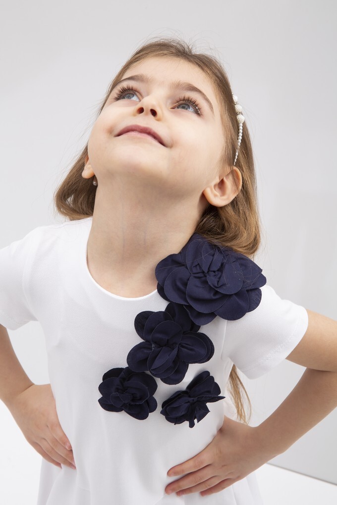 Эффектное белоснежное платьес объемной юбкой и крупнымитемно-синими цветами в качестведекора сделают летний образуникальным, а фотографии получатсяпросто невероятными.