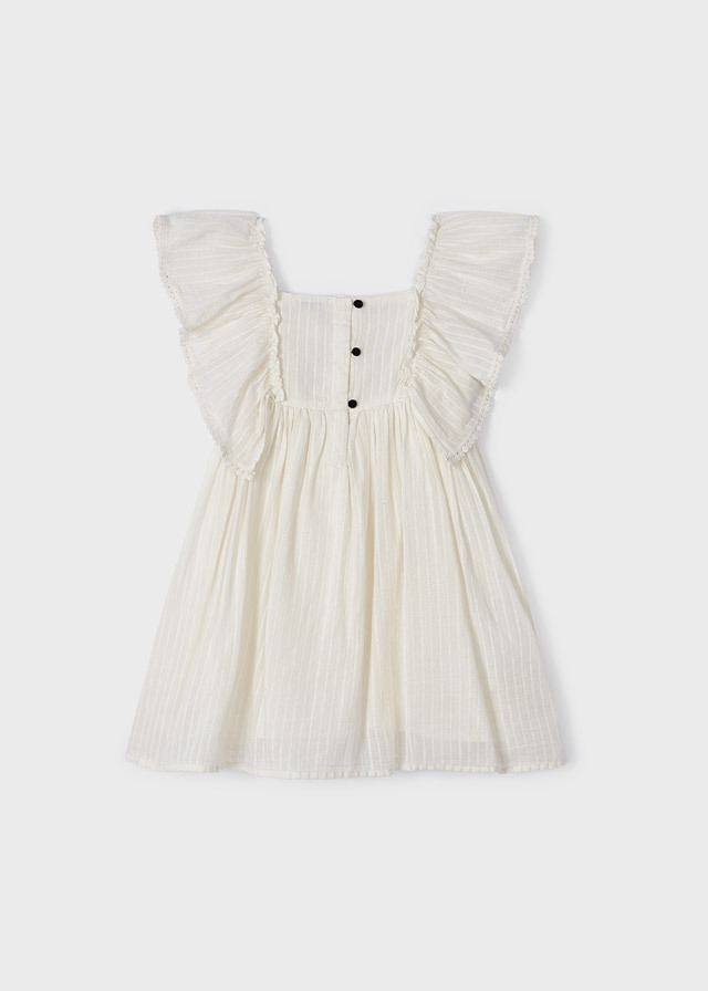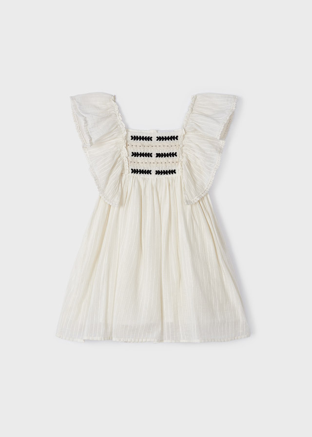 Белоснежное воздушное платьес объемными бретельками ивышивкой на груди выделитВашу дочку этим летом. Приятнаяи нежная ткань подарит чувствоуюта. Подкладка выполненаиз 100% хлопка.