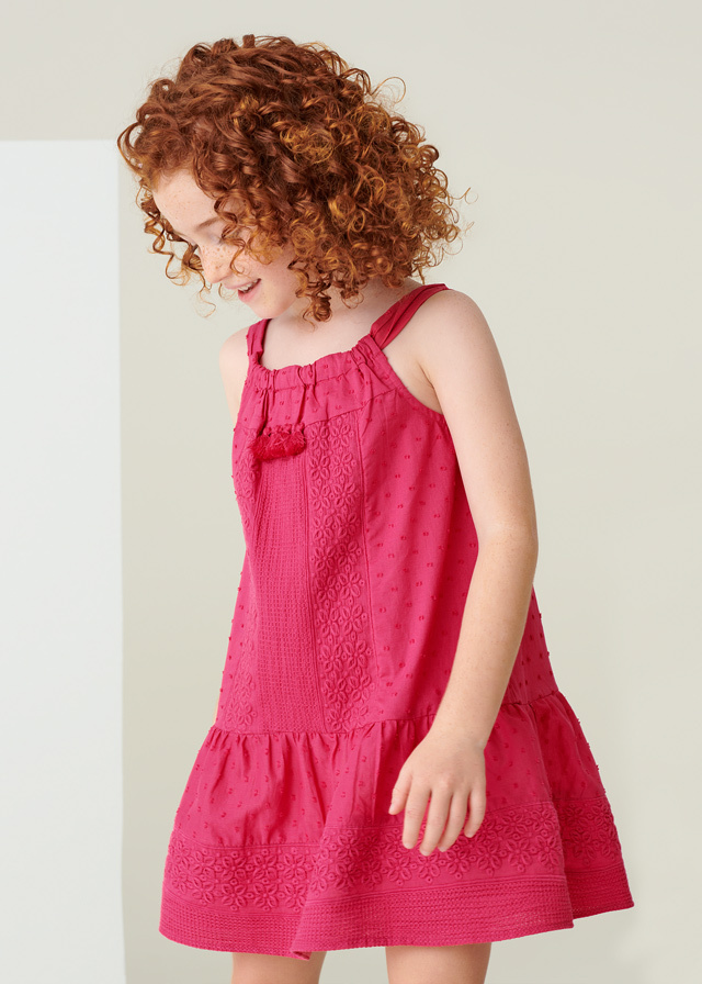 Легкое платье свободной формыплатье идеально для жаркой погоды.Красивый глубокий малиновый цветделает платье особенным, и позволитвыделить Вашу девочку.