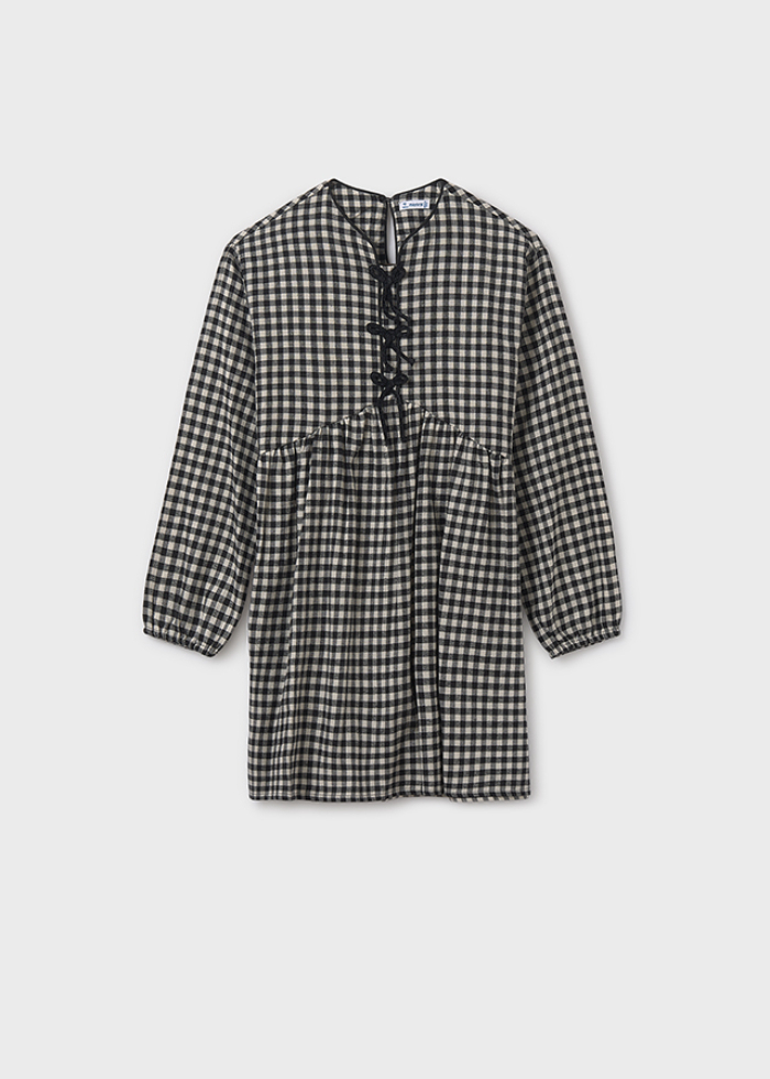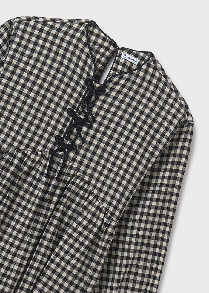 Воздушное хлопковое платьеидеальной расцветки с бантамиидеально подойдет на любой сезон.Образ можно завершить плотнымиколготками и ботинками.
