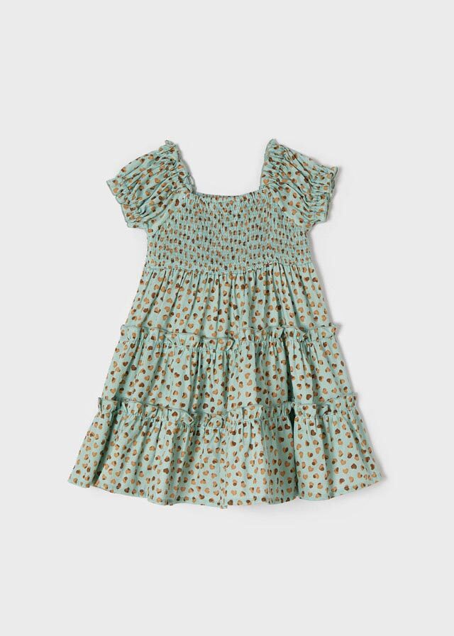Чудесное платье бирюзового цветас сердечками очень милое истильное. В нем Ваша доченькапривлечет к себе все внимание.