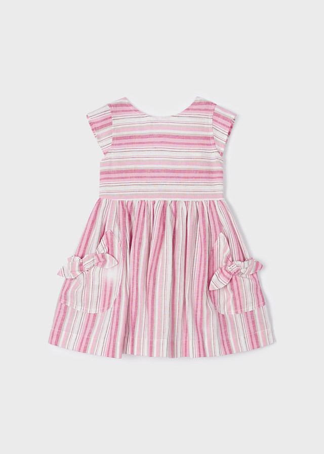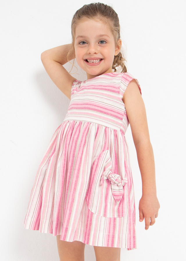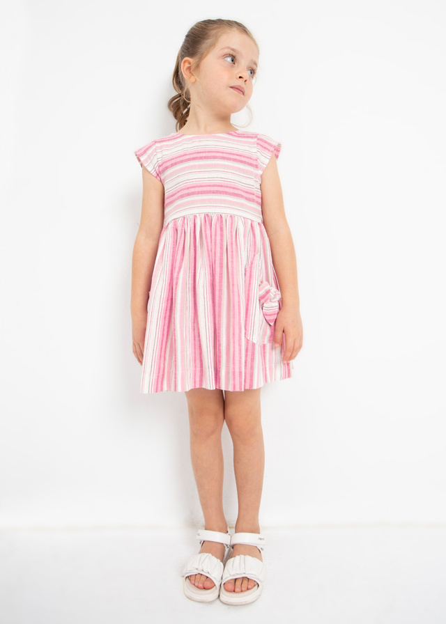 Нежное воздушное платье с бантиками на карманах сделает из девочки маленькую принцессу. У платья есть металлическая строчка, что выделит платье на фоне остальных.
