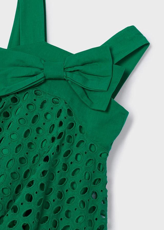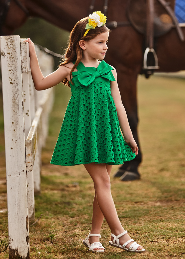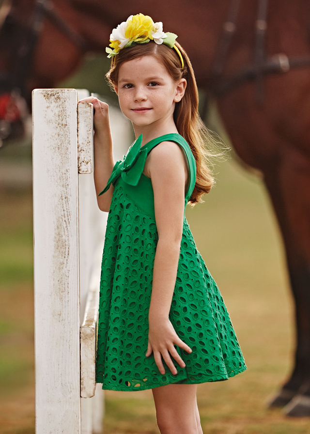 Фантастическое платье изумрудногооттенка подойдет каждой девочке.Его можно надеть и на праздник, и наобычную прогулку. В нем Ваша дочкане остатнется без внимания.