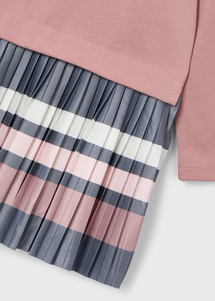 Очень эффектное платье выполнено какбудто из кофты и плиссированной юбкисделает будничный день настоящимпраздником, ведь дочка привлечет к себевнимание всех вокруг.