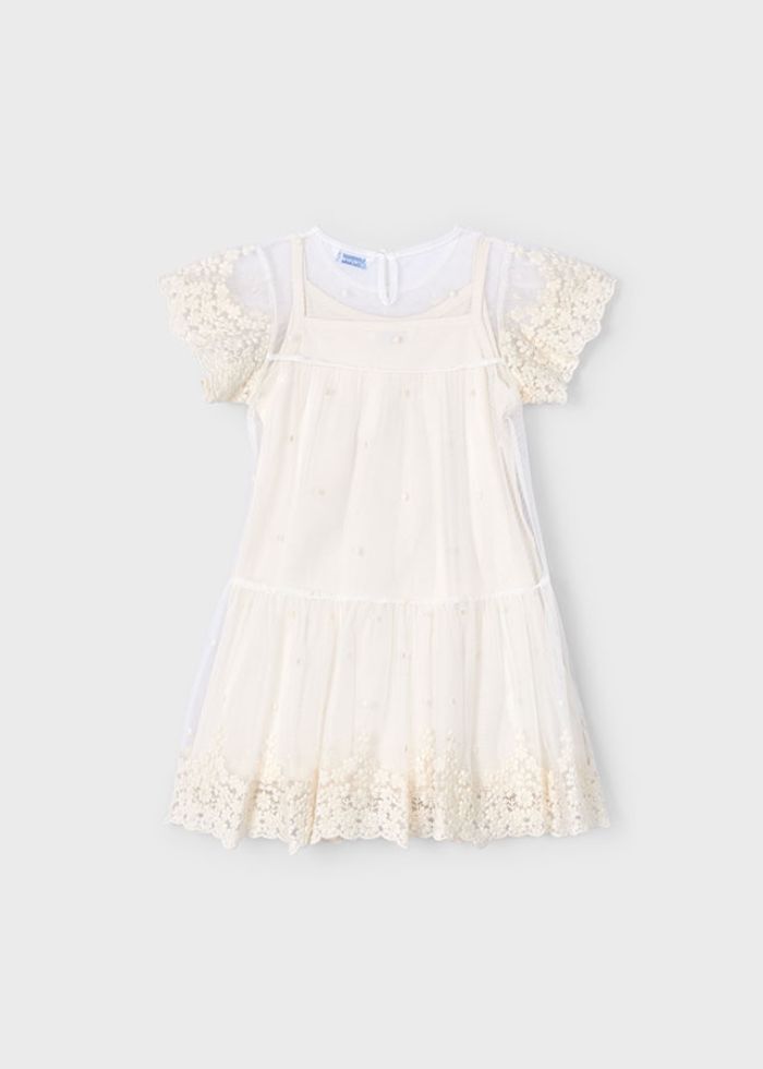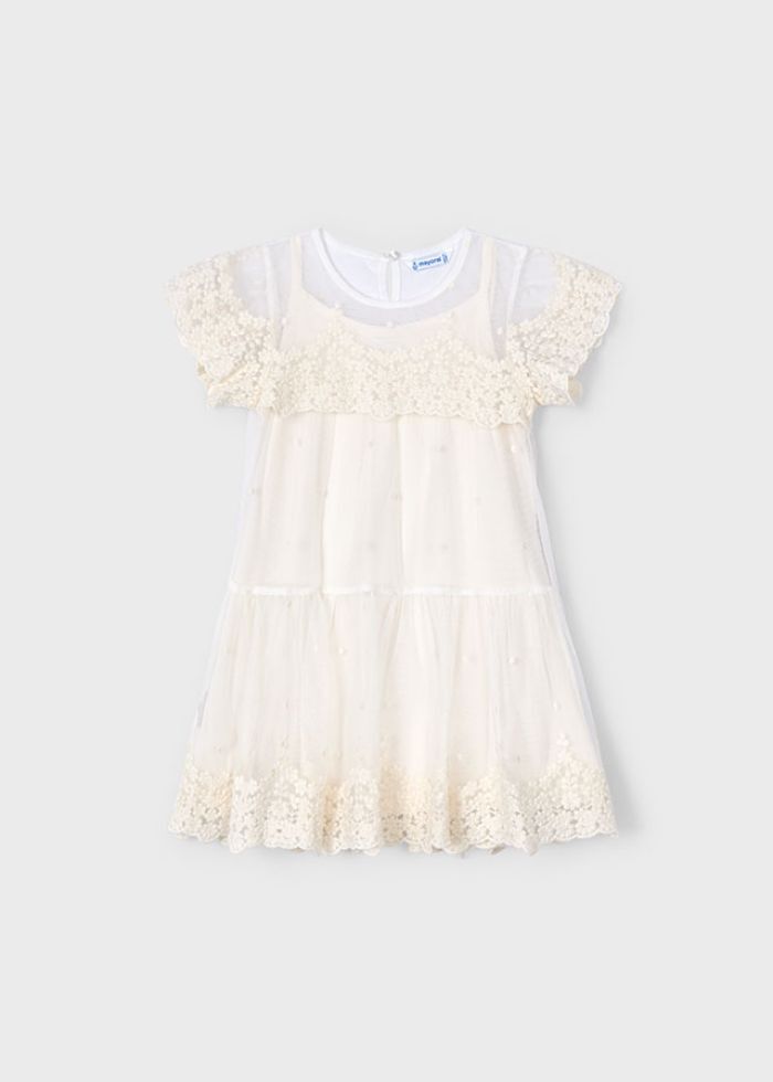 Воздушное платье настолько милое,что Ваша дочка будет самой красивой.Платье отлично подойдет для важногомероприятия. У платья есть сорочкаиз 100% хлопка.