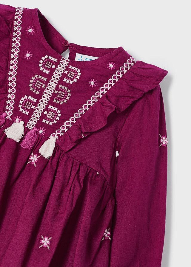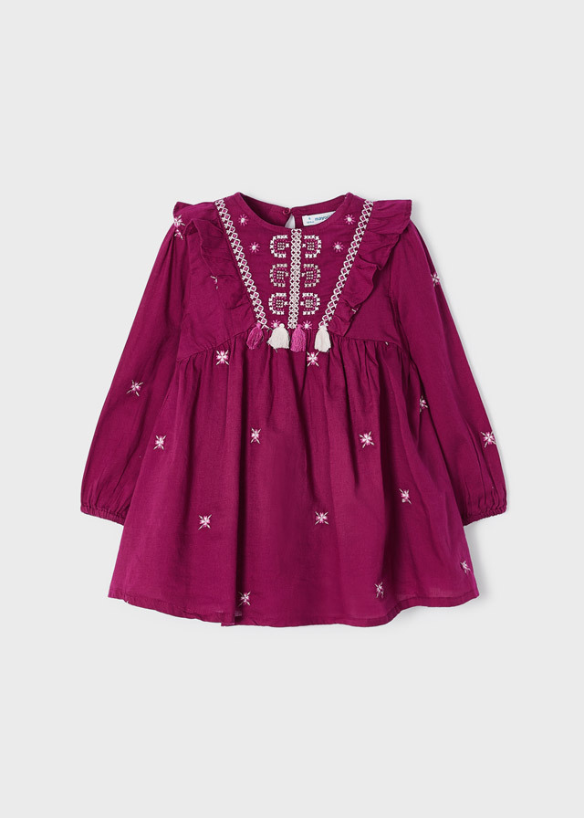 Яркое воздушное платье свободногокроя сделает Вашу дочку самойстильной. В сочетании с плотнымиколготками и ботинками образ будеточень модным.